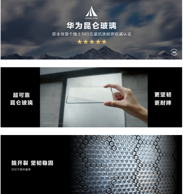 此外,华为昆仑玻璃手机面板玻璃含有数亿高强度纳米晶体,耐冲击、抗裂,是业内第一个瑞士SGS五星抗跌抗跌认证。