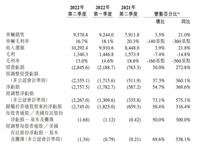 蔚来汽车在财务报告中表示,预计2022年第三季度汽车交付量为3.1万至3.预计第三季度收入为128万台.5亿元至136亿元。