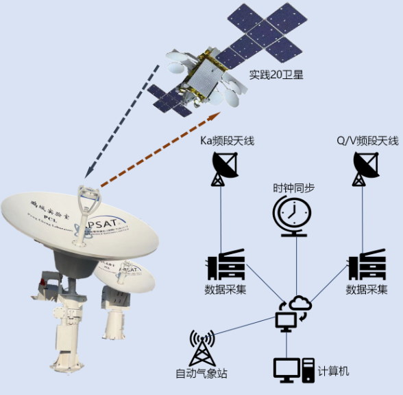 据介绍,这一套Q/V星地通信试验系统是基于航天五院开发的20号卫星的实践Q/V频段载荷,Q/V支持频段飞行控制、自动气象站和数据自动采集存储系统Q/V不同气候环境下频段星地信道的实际测量和抗衰落技术的有效性验证。