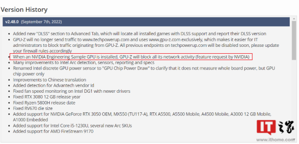 根据更新日志,英伟达要求,当更新日志时,GPU-Z检测英伟达未发布的工程样卡时,严禁连接自己的数据,避免显卡信息泄露。